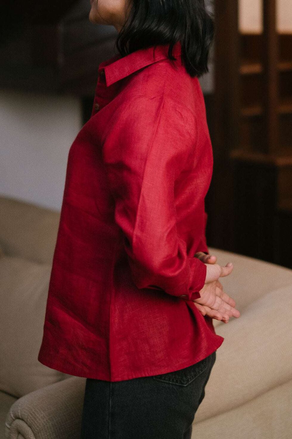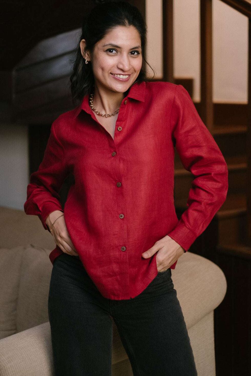 Women’s Cotton Solid Pain Straight Shirt With Wide Leg Palazzo Pant Casual Summer Collection Cord Set ( Maroon )